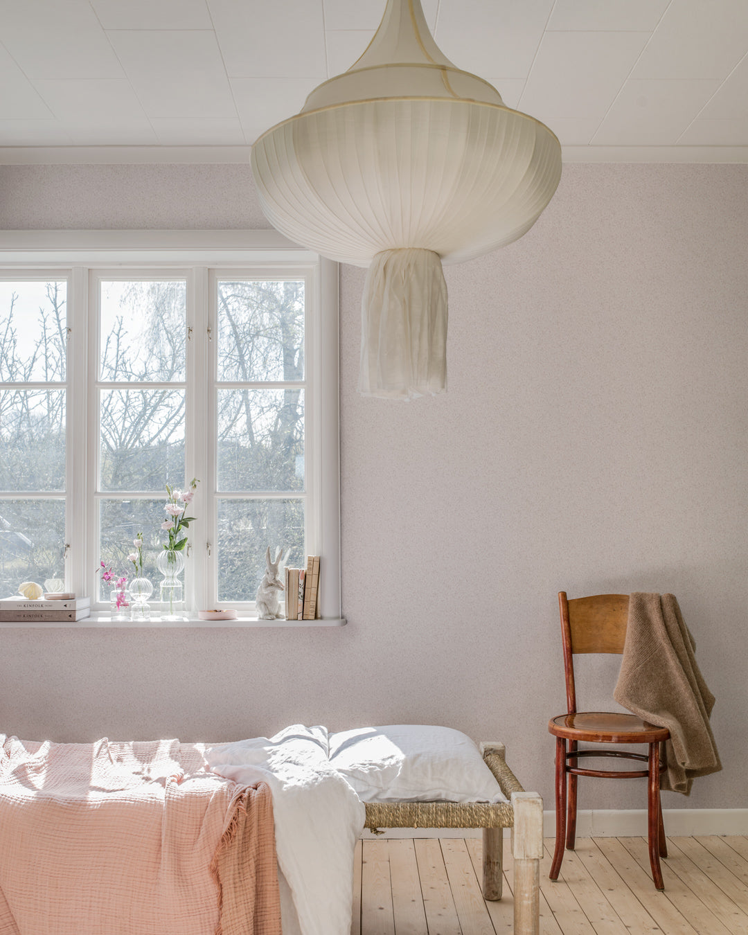 Skapa ett inspirerande barnrum med en härlig vintagekänsla. Denna söta ljusrosa tapeten gör sig perfekt i barnrummet. Med slingramde blommor och blad skapar tapeten Alva en trivsam känsla i rummet. Du hittar det söta mönstret i fler färgställningar, ritat av Hanna Wendelbo.