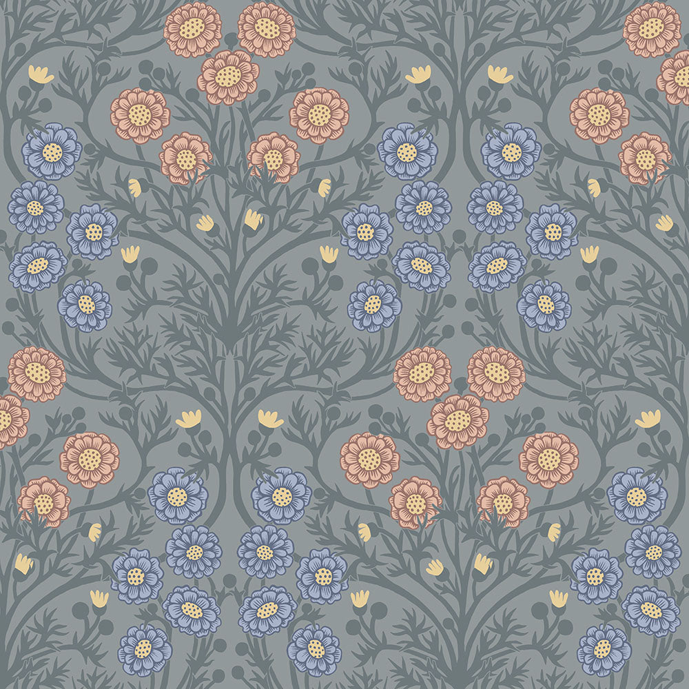 Tillför en sval, jordnära känsla till dina väggar med denna blå blommiga non-woven tapet. Den lugna blågråa bottenfärgen lägger en stabil grund för de små rosa och klarblåa blommorna. Mönstret Bellis hittar du i totalt 6 färgsättningar.