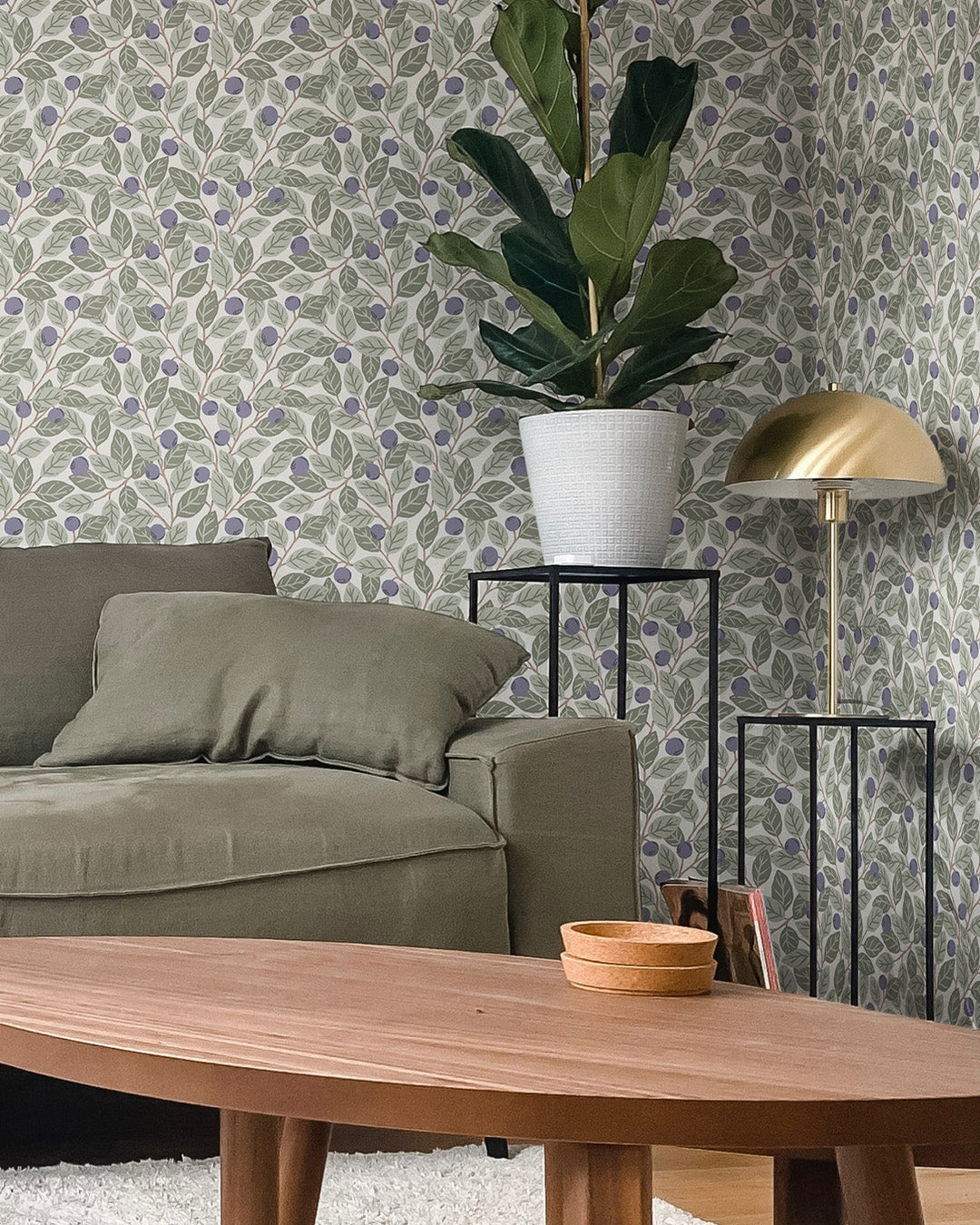 Ta in den vackra svenska naturen i hemmet. Blåbär är en stor del av vår svenska välfärd så vad är väl bättre än att skapa en enda stor skog full av just dessa saftiga blå bären. Här ser du Blåbär med en vit botten och ett mönster i grönt och lila.