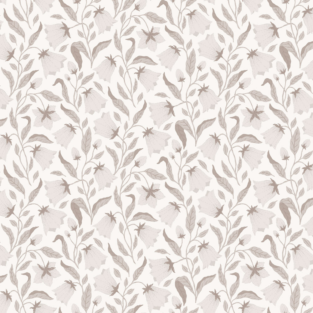 Blåklockan är en vanlig blomma som syns i stora delar av vår svenska natur. En somrig favorit som så fint förgyller ängarna. Ge glans åt även hemmets väggar med tapeten Blåklocka och skapa ren eufori. Här syns behagliga toner i beige mot en vit botten.