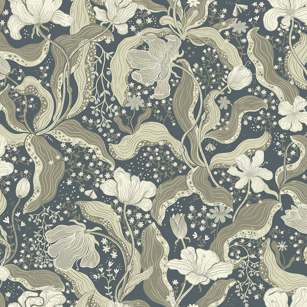 Tapeten Bodri med sitt tulpanmönster breder ut sig vackert över väggen och ger ett djup med sin mörkblå botten. Tapeten bjuder på dova nyansskiftningar som kan förändra känslan i ett helt hem. Mönstret är skapat av formgivaren Lina Schnaufer, som alltid försöker gestalta den komplexitet av växter och liv som förenas mellan då och nutid. Bodri finns i sex färgställningar.