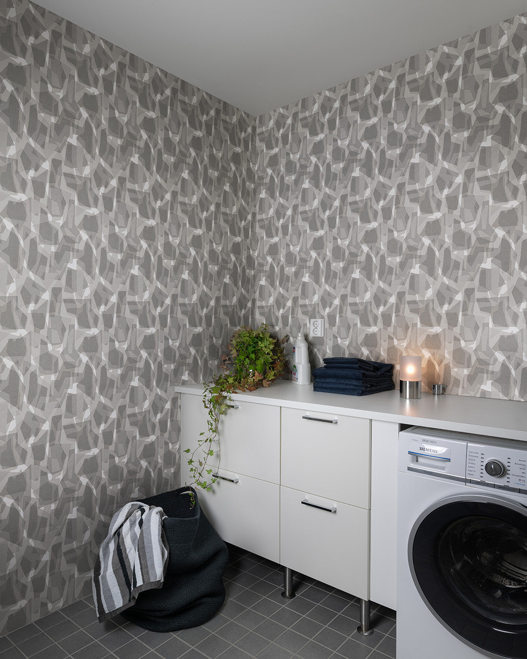 Skapa ett effektfullt uttryck med detta gråa geometriska camouflage tapet. Den ger den perfekta industriella känslan med koppling till det mjuka sköna i naturen.