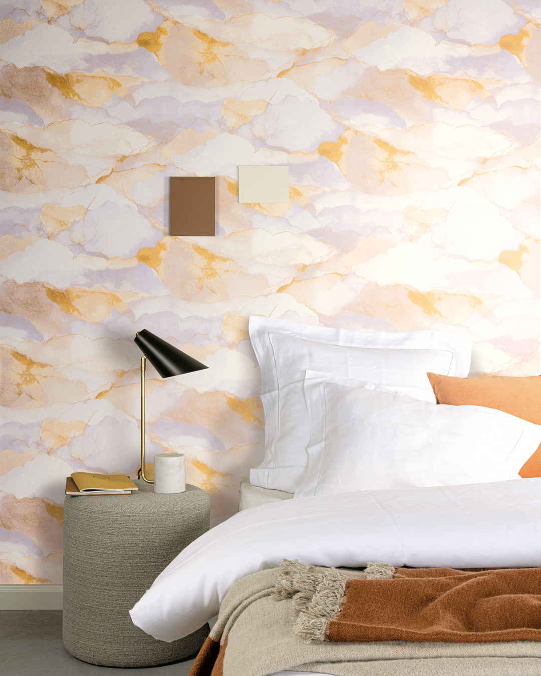 Härlig tapet med ett molnmönster i pastellrosa och beige. Ett mönster som finns i tre olika färgställningar. Ett avskalat, lugnt mönster som passar i både sovrum, matsal, vardagsrum och hall.