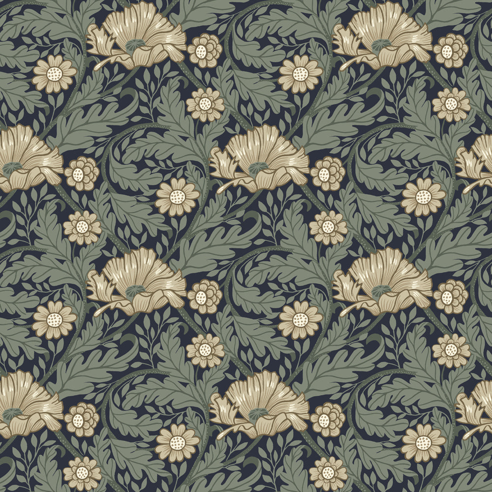 Med fina tapeten Esther med sin mörkblå botten får du en droppe av midnatt. Esther pryds av ett fantastiskt blommönster i beige och ett slingrande bladverk i grönt, handmålat av designern Hanna Wendelbo. Passar i alla rum men ger ett extra lugn i sovrummet. Tapeten finns i fem olika färgställningar.