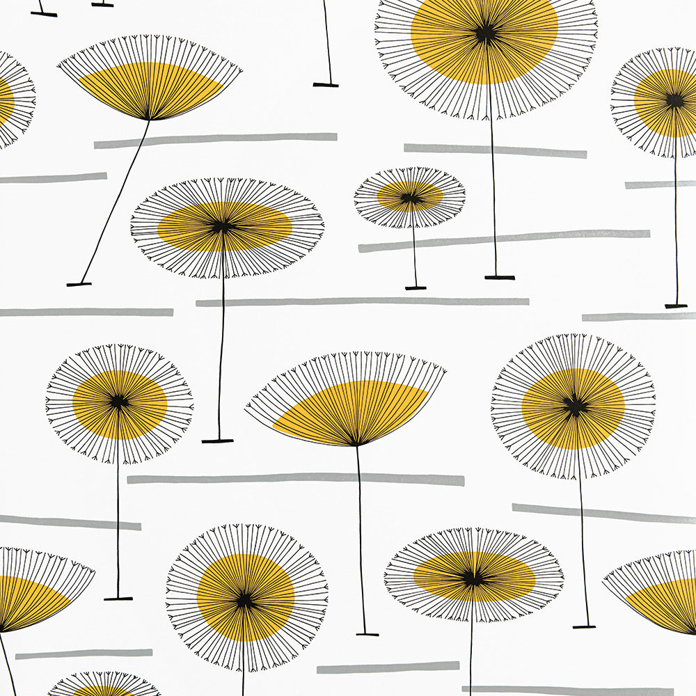 En nostaligisk skönhet presenteras i form av mönstret Grasslands Bon Bon. En stormönstrad tapet med stiliserade blomformer sprider en härlig retrokänsla i rummet. Utblommade gula maskrosor är handskissade med tunna svarta pennstreck som pryder den mjuka vita botten. En tapet som sätter tonen i alla rum, passar exeptionellt i kök, hall och vardagsrum.