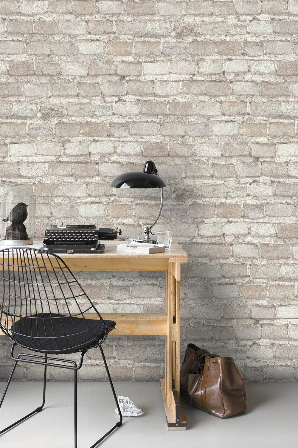 Denna realistiska tegeldesignen med oslipade former hämtar sin inspiration från den skandinaviska och industriella stilen. En ljusgrå tapet i tegel kompletterar vackert en accentvägg eller flera väggar i rummet. Skapa ett modernt rum fullt av karaktär med grå tegeltapet.