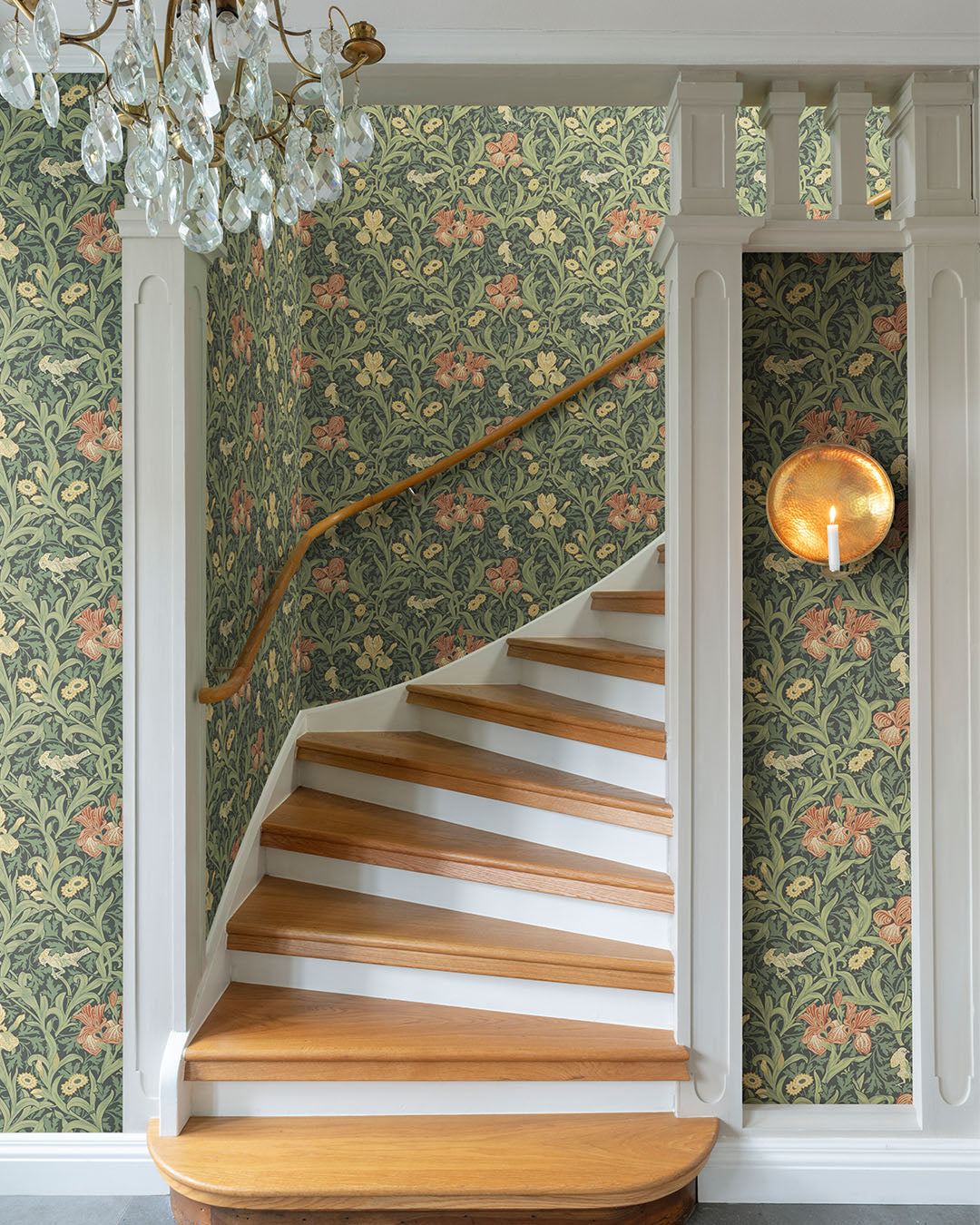 Tapeten Iris får ett vackert djup när irisblommor i rosa och havregul med grönblå stjälkar samt havregula ringblommor på gråblå stjälk möts och vilar på en mörkblå botten. Små söta fåglar gömmar sig bland bladen och ger tapeten ett charmigt uttryck. Med Iris tillför du en härlig dos av tidlös William Morris design till hemmet vilket ger det båda karaktär och personlighet.