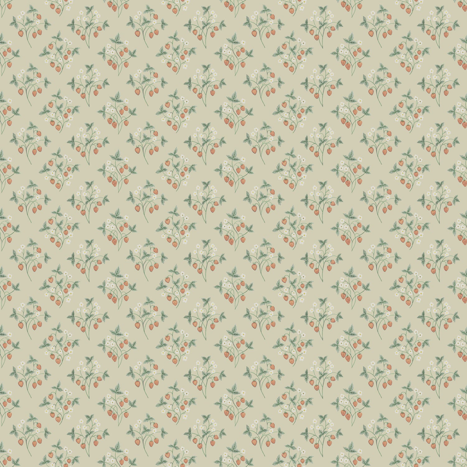 Med smak av sommaren skapar tapet Jordgubbar med gulbeige botten och röda bär en hemtrevlig och mysig atmosfär i rummet. Den ger ett avslappnat och lantligt intryck där de söta jordgubbsplantorna sprider ett välbehag och skapar en plats att njuta av, en plats där du kan slå av på takten och andas ut.