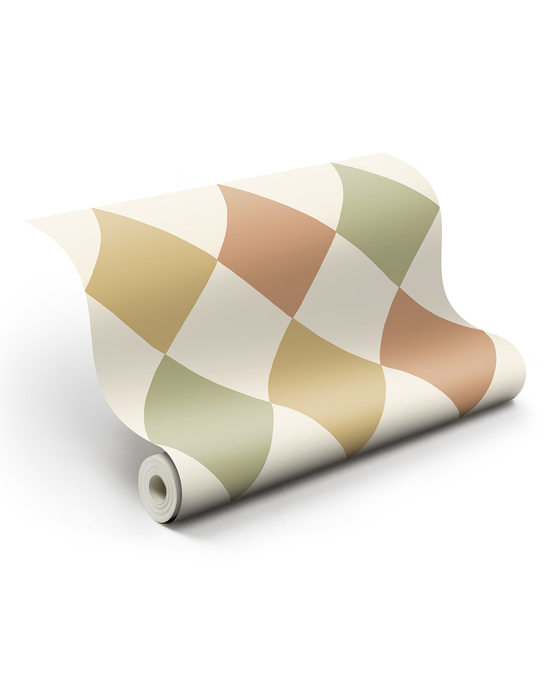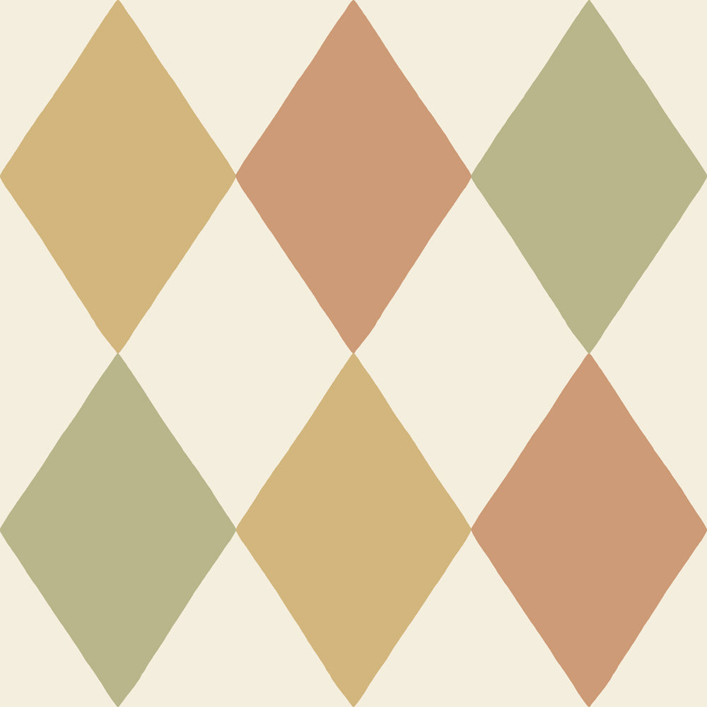 Att räkna ner med hjälp av handens fingrar, 5, 4, 3 prasslande snören och saft i Duralexglas. Barntapet Kalas försöker fånga känslan av att fylla fem år pantgömme och sockerchock. Detta klassiska harlequin mönster i lejongult, rost och olivgrönt passar fint i alla typer av rum som du vill ge en liten extra kick.
