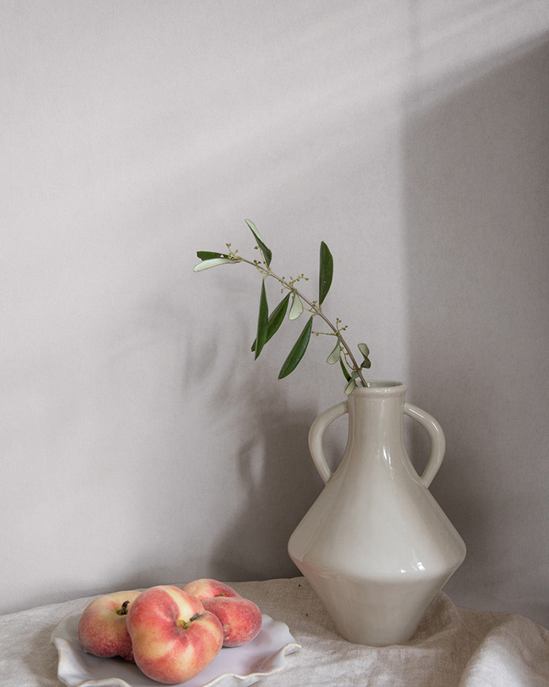 Denna ljusa lila-grå enfärgade tapet har ett diffust melerat mönster och ger hemmet ett lugn. Den neutrala tonen gör tapeten väldigt användbar och binder samman den övriga inredningen i rummet. Tapeten har en lätt struktur och bidrar till ett mer ombonat uttryck. Samma tapet finns i fler olika kulörer och är skapad av Björn Nilsson.