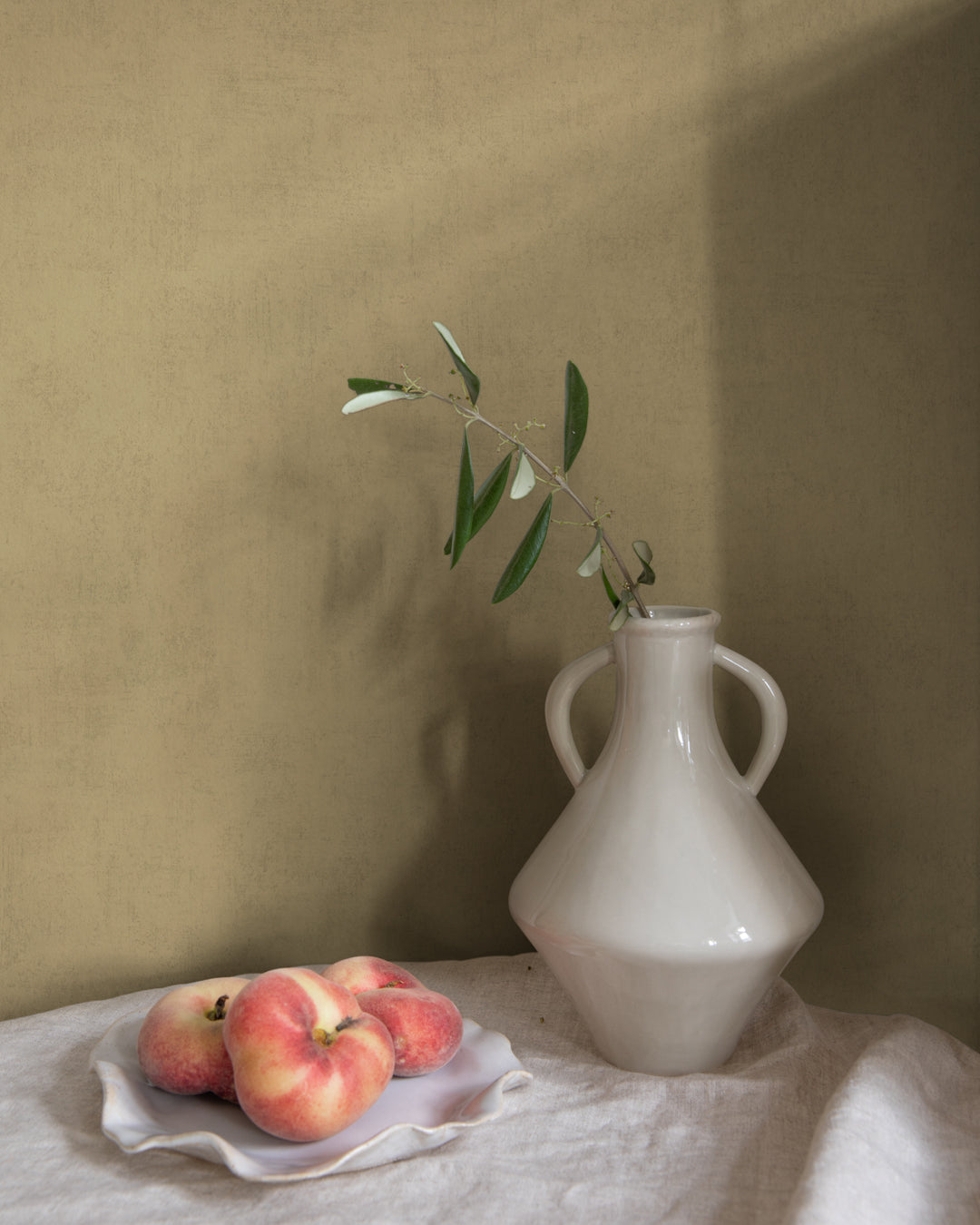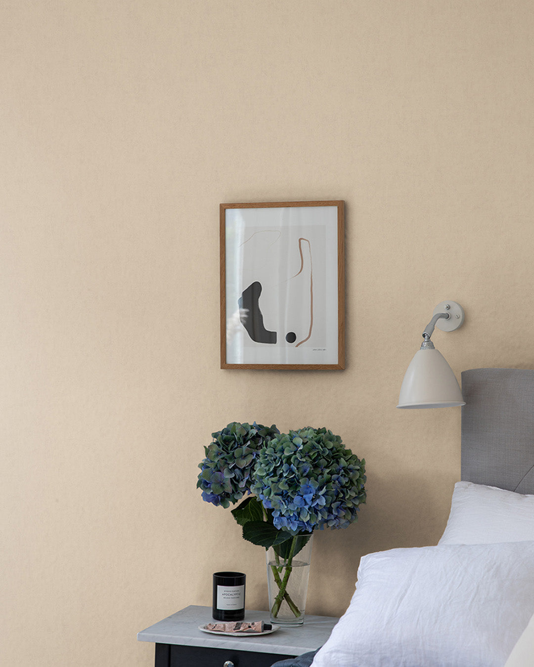 En vacker beige kalktapet med inslag av periska. Tapeten är välkomnande och för tankarna till soliga sommardagar. Den vackra nyansen passar bra i stora rum som för med sig ett naturligt ljus. Kombinera tapeten med andra bleka och neutrala nyanser för en mer sofistikerad och genomtänkt stil. Skapad av Björn Nilsson.