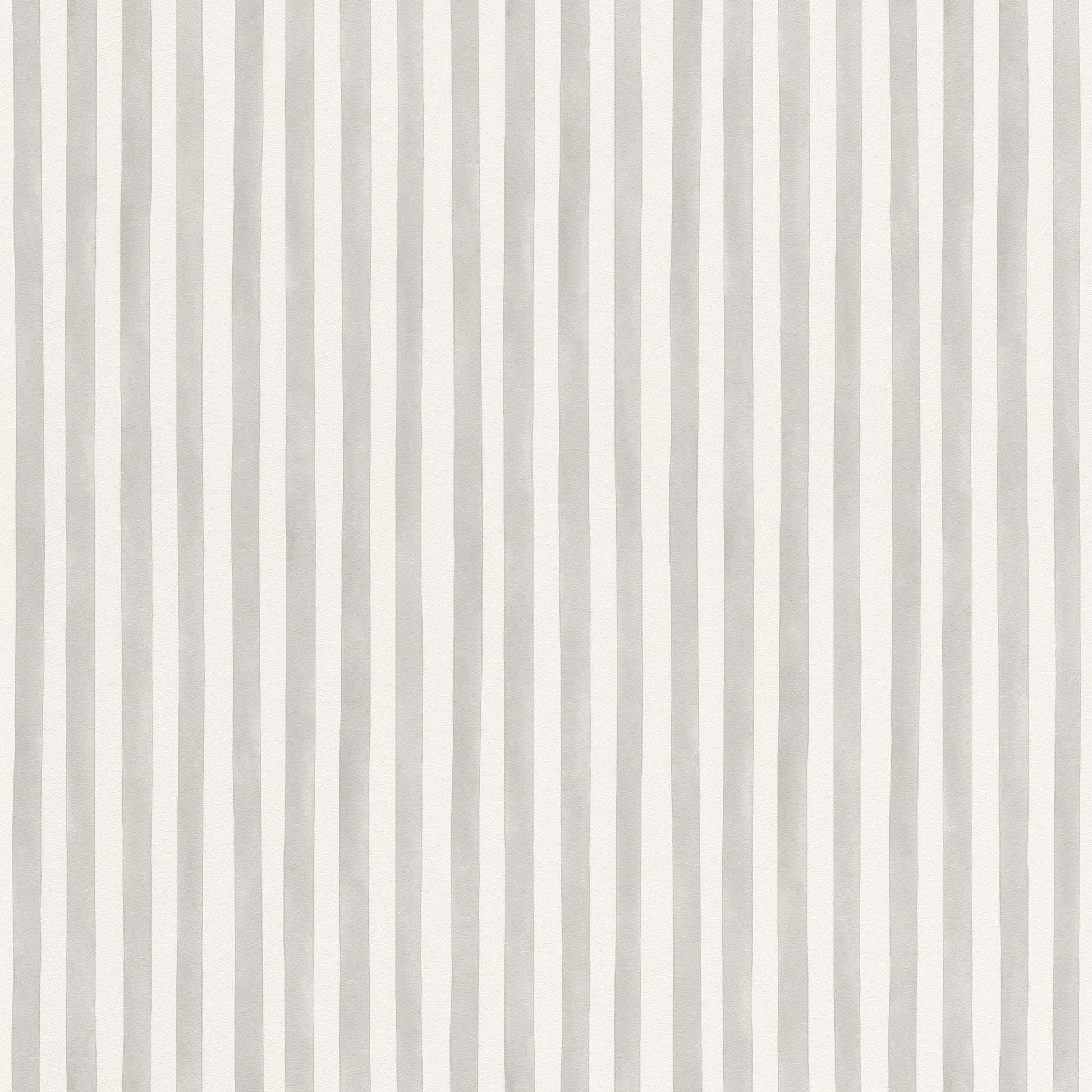 Ljusgrått passar till näst intill allt. Denna randiga tapet ger barnummet en klassisk och tidlös design som enkelt går att styla med interiör i andra färger.