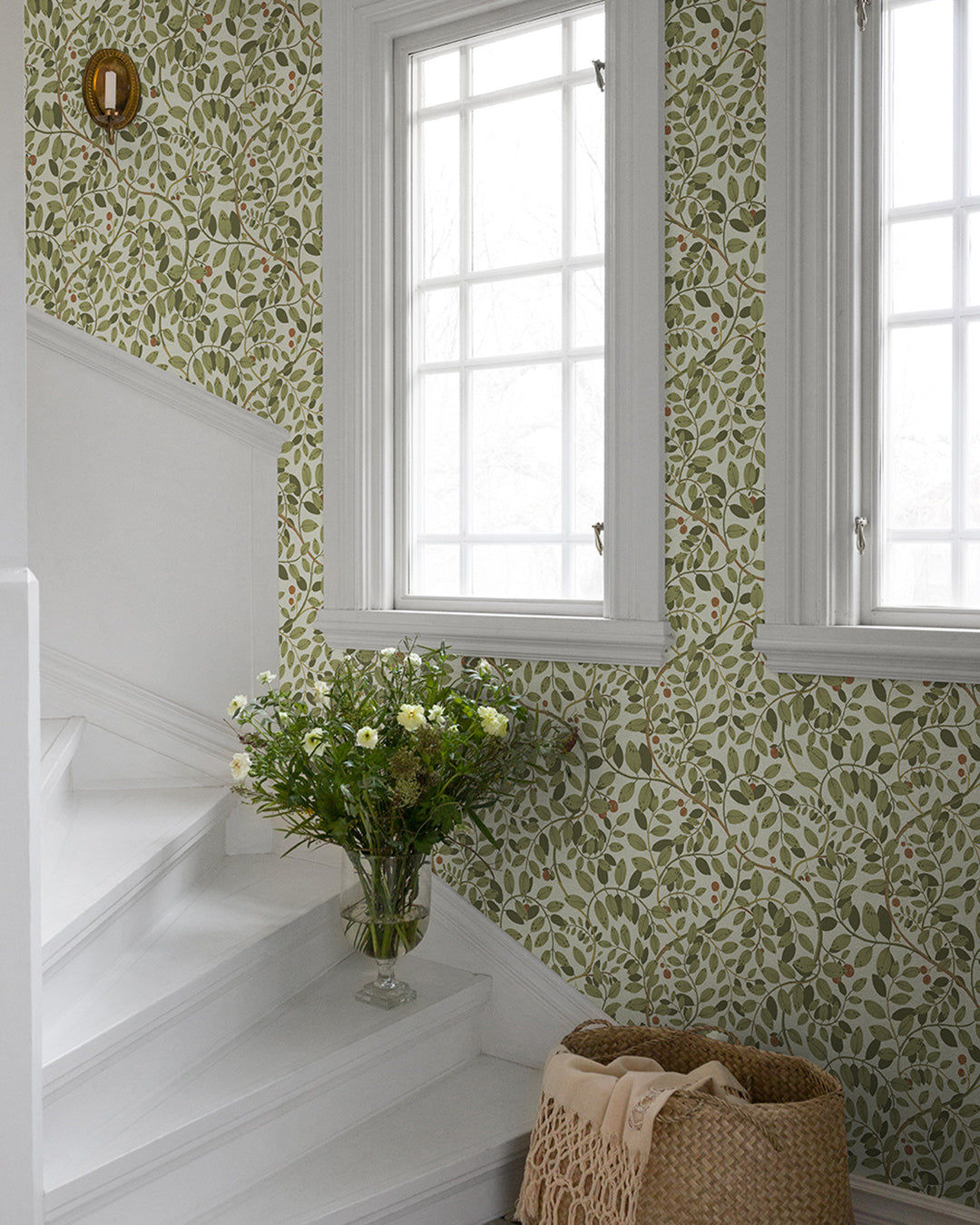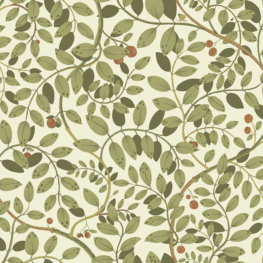 Kirke, tapeten med ståtliga slingrande bladverk. Kirke har ett vackert mönster av gröna blad mot en behaglig cremevit botten. Tapeten ger vårkänslor året om och är svår att inte älska. Med dova nyanser skapar Kirke en hemtrevlig känsla. Tapeten är designad av Lina Schnaufer.