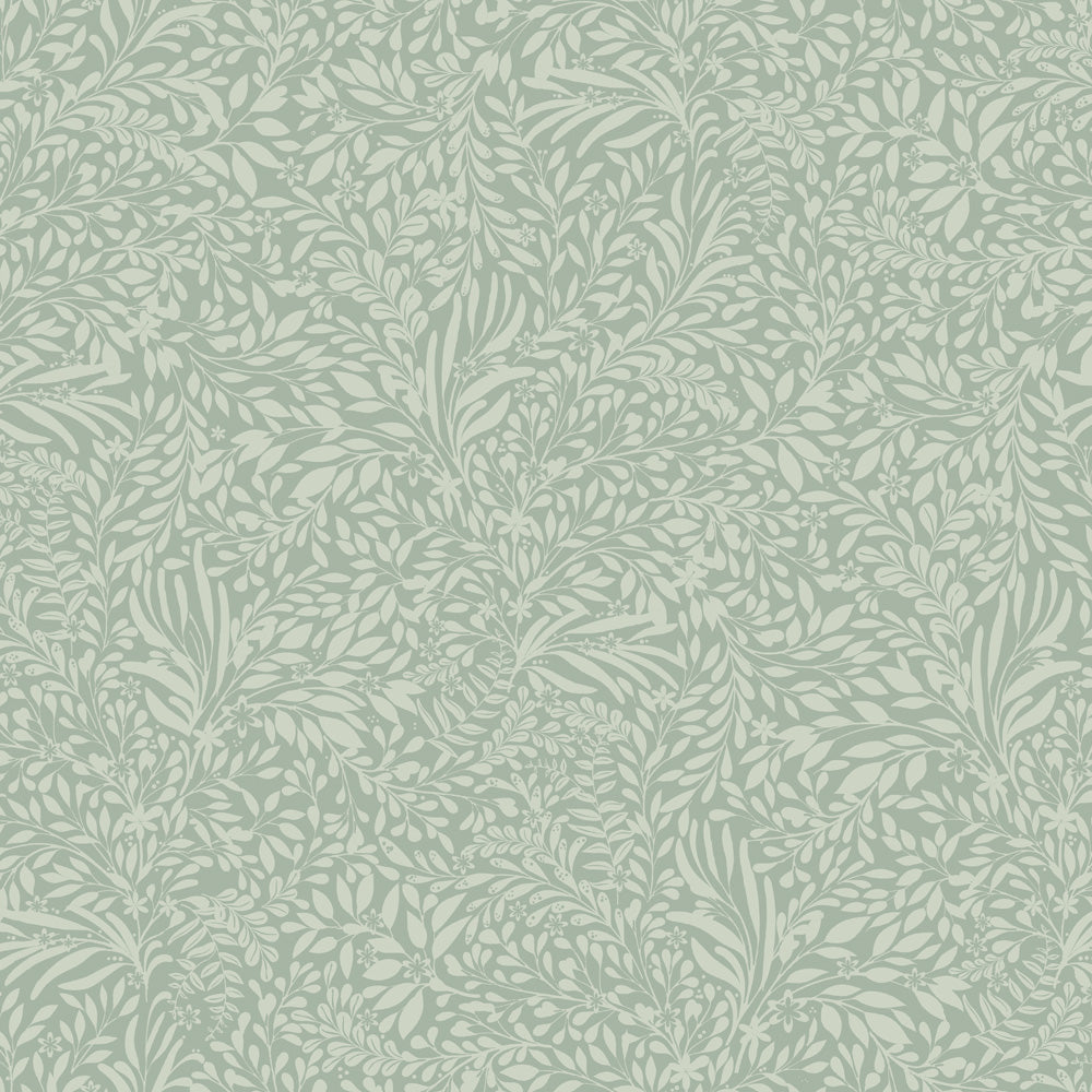 Kistina är en grön tapet i en mjuk och behaglig kulör som förmedlar en lugn och harmonisk känsla. Det tätt slingrande bladverket smälter in ton i ton och skapar ett subtilt, levande mönster som ger väggen en elegant struktur. De fina detaljerna i bladen ger djup och rörelse utan att bli dominerande, vilket gör tapeten till ett perfekt val för den som vill ha en naturlig, ombonad och tidlös atmosfär i sitt hem.