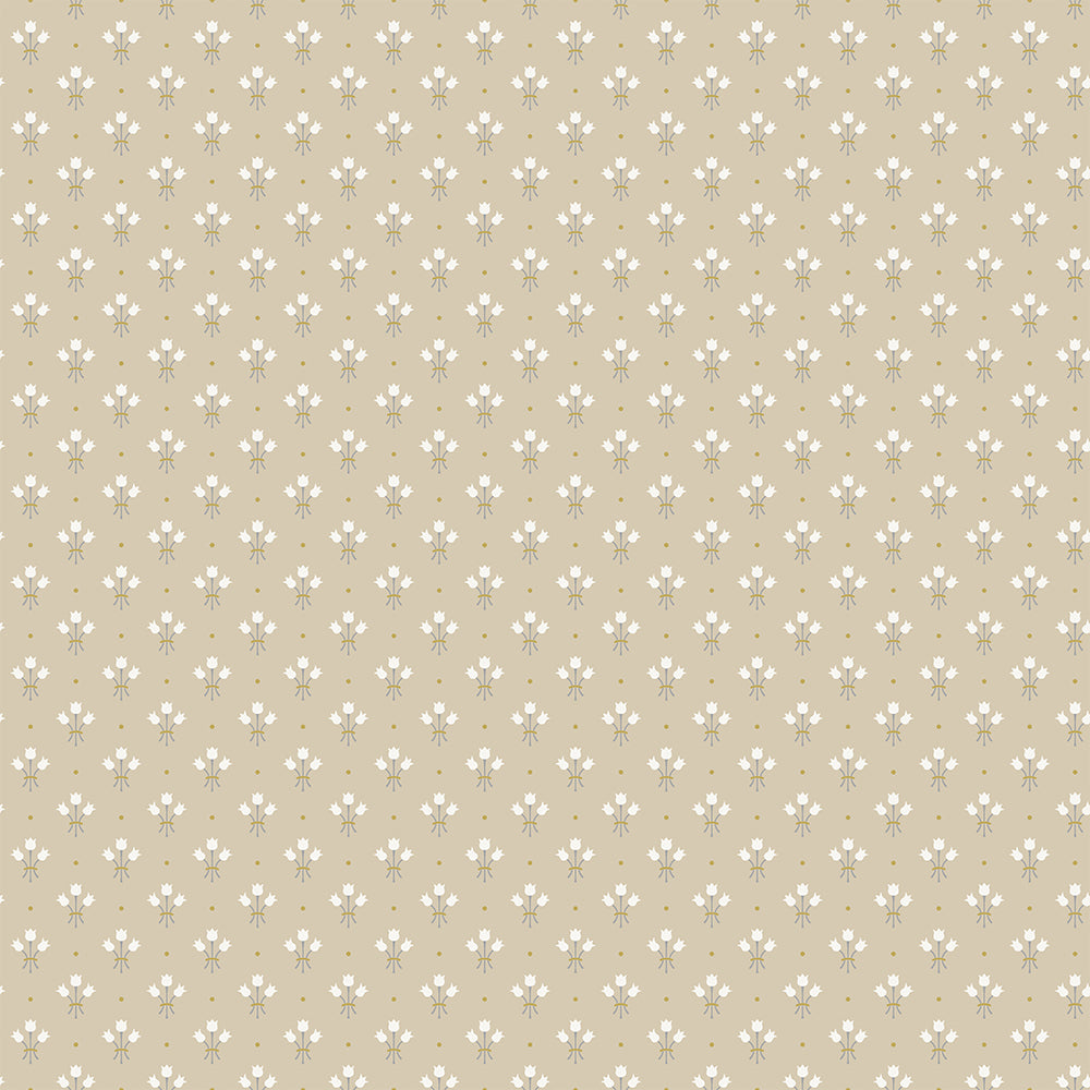 Beige tapet med smått, diskret tulpanmönster i vitt. Lilja är en ljuvlig tapet med sitt näpna tulpanmönster som ger ett trivsam känsla i ett ombonat kök, eller varför inte vardagsrummet? Tapeten finns men i kollektionen Apelviken som är en av designern Hanna Wendelbo´s kollektioner för Midbec.