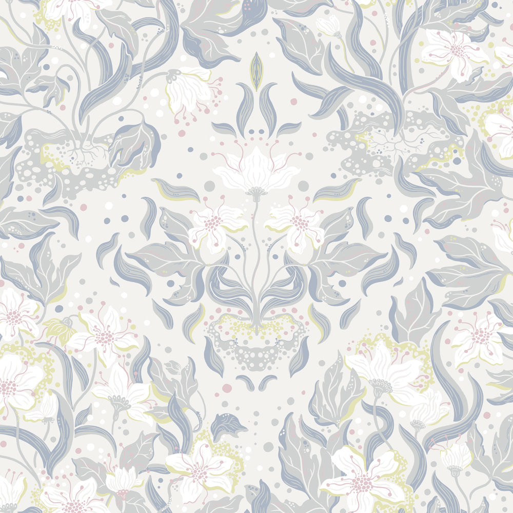Tapeten Lisa utgör ett magiskt symmetriskt blommönster där vitsippor sprider sig på ett drömlikt vis. Med en ljusgrå botten och skira färgaccenter av rosa gul och blå bildar den en neutral tapet som ger upphov till fantasi. Placera den i ett barnrum för att skapa magiska minnen, eller varför inte i en hall för att föra in lite liv i vardagen.