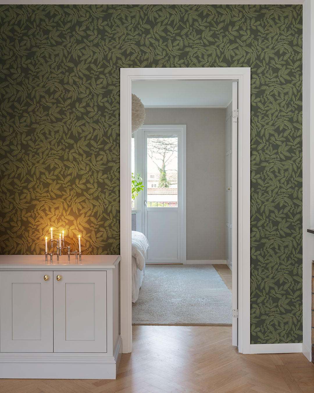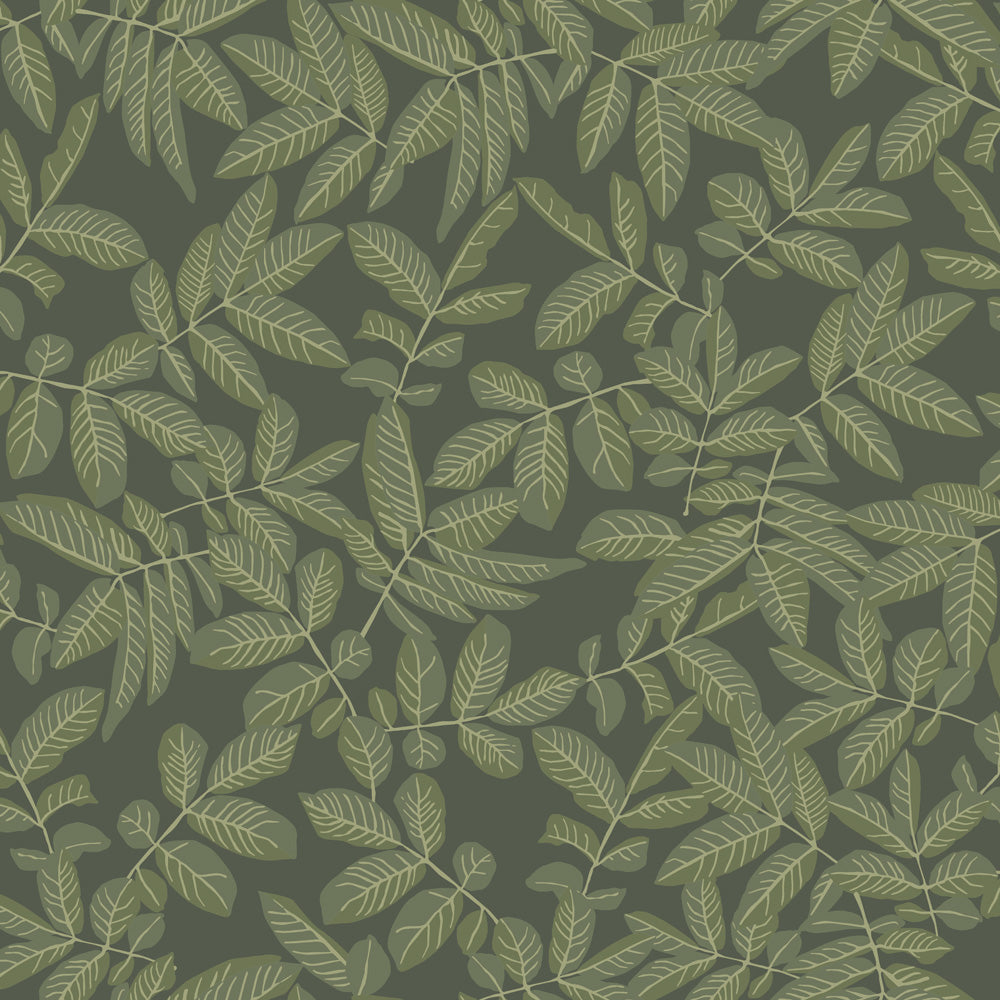 Den lummiga tapeten Lövskog fångar skogens fridfulla skönhet med sin harmoniska gröna bottenkulör och vackra bladverk i varierande nyanser av grönt. De mjuka, organiska formerna skapar en levande känsla, där ljusa och mörka blad skiftar i ton och djup, likt ett solspel genom trädkronorna. Mönstret ger rummet en lugn och naturlig atmosfär, perfekt för att skapa en känsla av närhet till naturen oavsett om det är i vardagsrummet, sovrummet eller en mysig läshörna.