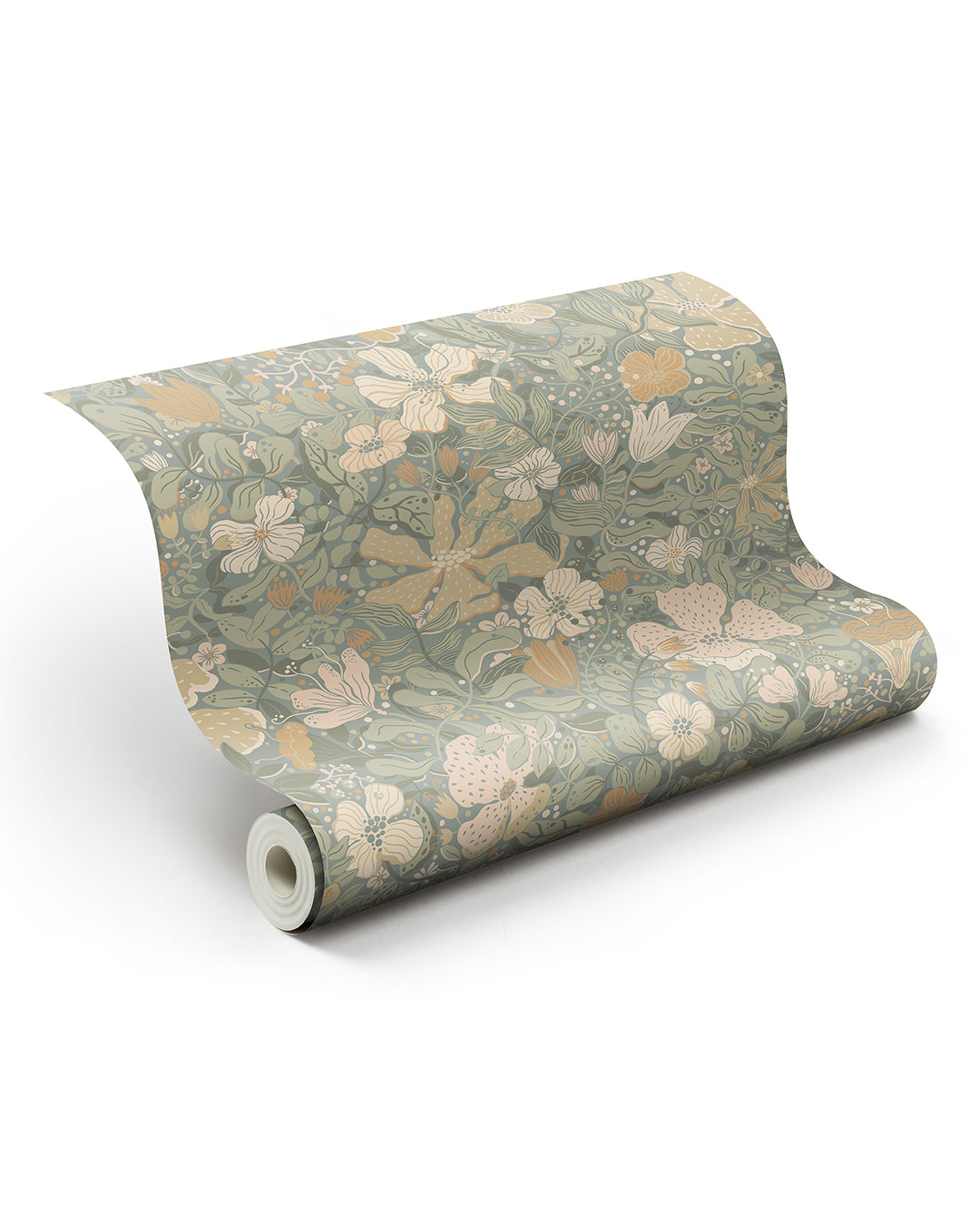 Med tapet Midsommar i gråblå färgställning skapas enkelt ett livfullt rum med personlig känsla. Den dämpade färgskalan med mjuka nyanser av grågrönt, rost, beige och rosa skapar ett rofyllt rum med plats för avkoppling. Tapetens mönster av blommor, blad och vacker växtlighet dansar mjukt tätt tillsammans längs väggarna. I det här rummet är det bara att njuta!