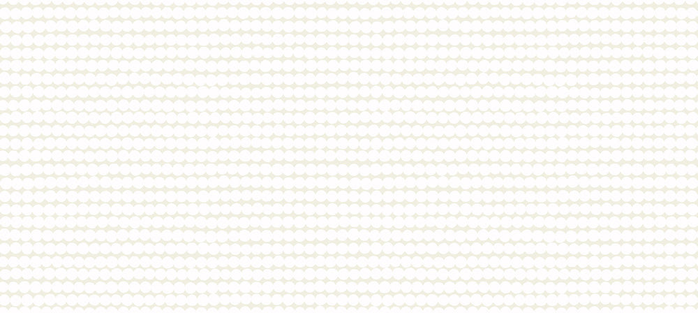 Tapet Räsymatto från Marimekko är ett ikoniskt mönster som hämtar inspiration från traditionella finska trasmattor. Mönstret består av rader av cirklar som skapar ett rytmiskt och grafiskt uttryck. I färgställningen med nyanser av vitt och beige får tapeten ett mjukt och harmoniskt utseende. De ljusa tonerna ger en subtil elegans som passar väl i skandinaviska inredningar. Denna färgkombination framhäver mönstrets struktur utan att bli överväldigande, vilket gör tapeten lämplig för både små och stora utrymmen.