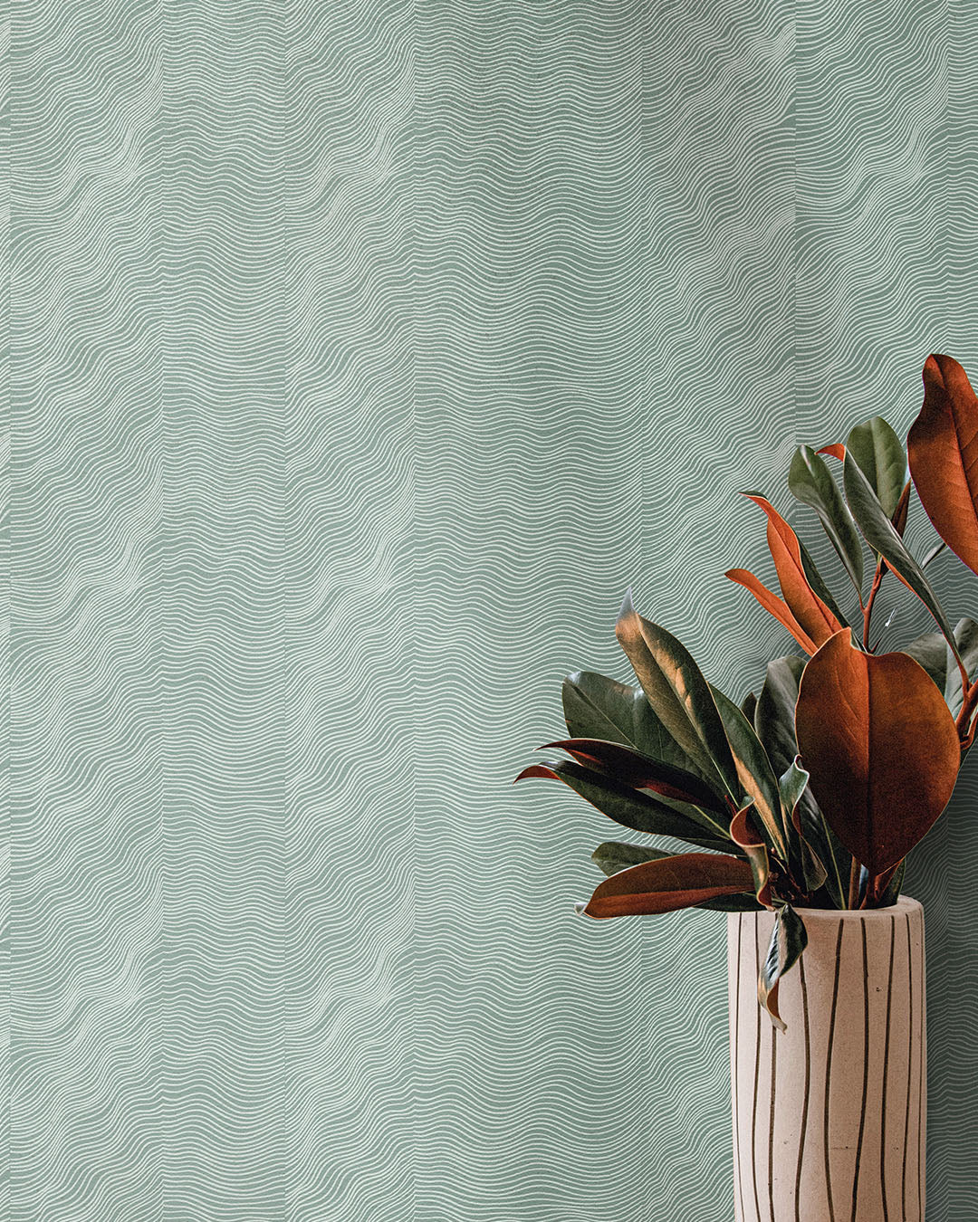 Tapet Näkki från Marimekko är en fräsch och modern design som skapar en lätt och inbjudande atmosfär. Den ljusa bottenkulören i aqua ger ett upplyftande och friskt uttryck, medan det böljande, stilla vågmönstret i vitt ger en subtil men dynamisk rörelse över ytan. Mönstrets svepande linjer påminner om mjuka vattenrörelser, vilket ger tapeten en känsla av lugn och flöde. Den luftiga färgkombinationen skapar en harmonisk balans som passar perfekt i rum där du vill ha en lugn och samtidigt energigivande känsla.