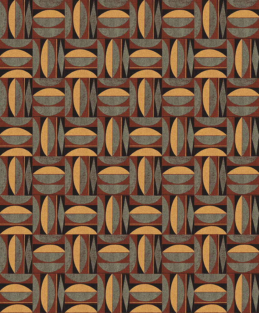 Pigga upp dina väggar med ett vackert geometriskt mönster och skapa en varm mystik i rummet. Tapeten Occidens Russet består av en svart botten och ett mönster i rött, koppar och grönt.