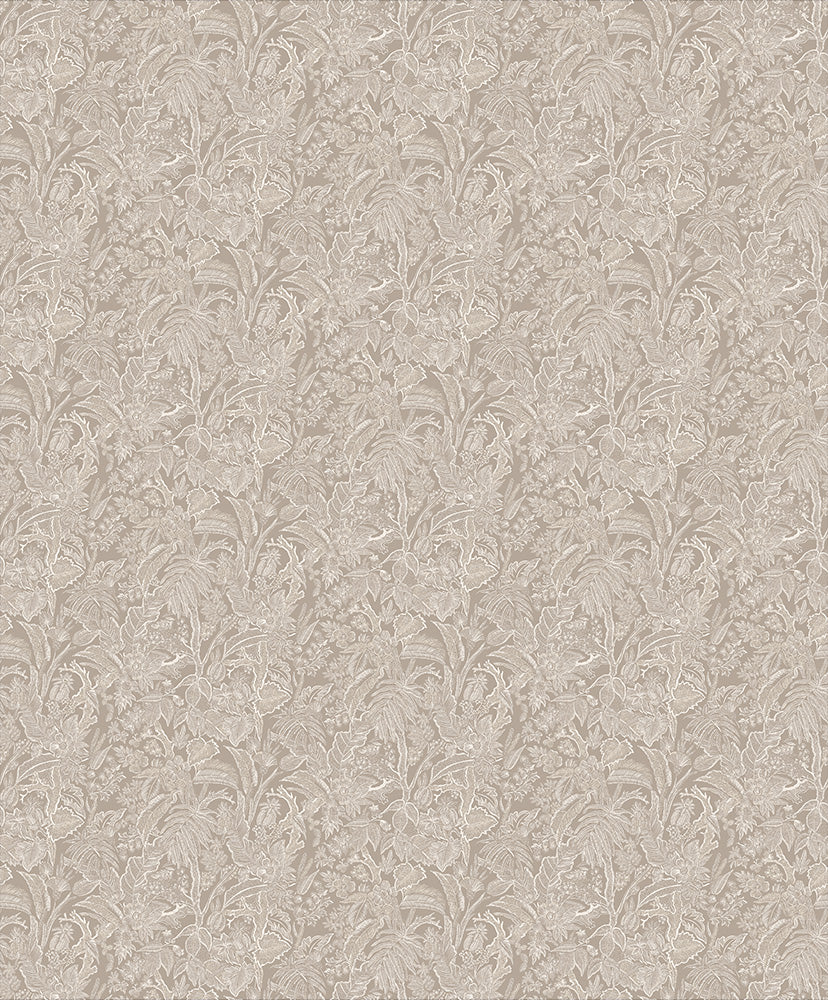 Underbart och detaljrikt pryder denna linjeteckning av blommor och blad hemmets väggar. I en sober beige nyans sprider tapeten harmoni kring sin omgivning vare sig det är i sovrummet eller i matsalen.