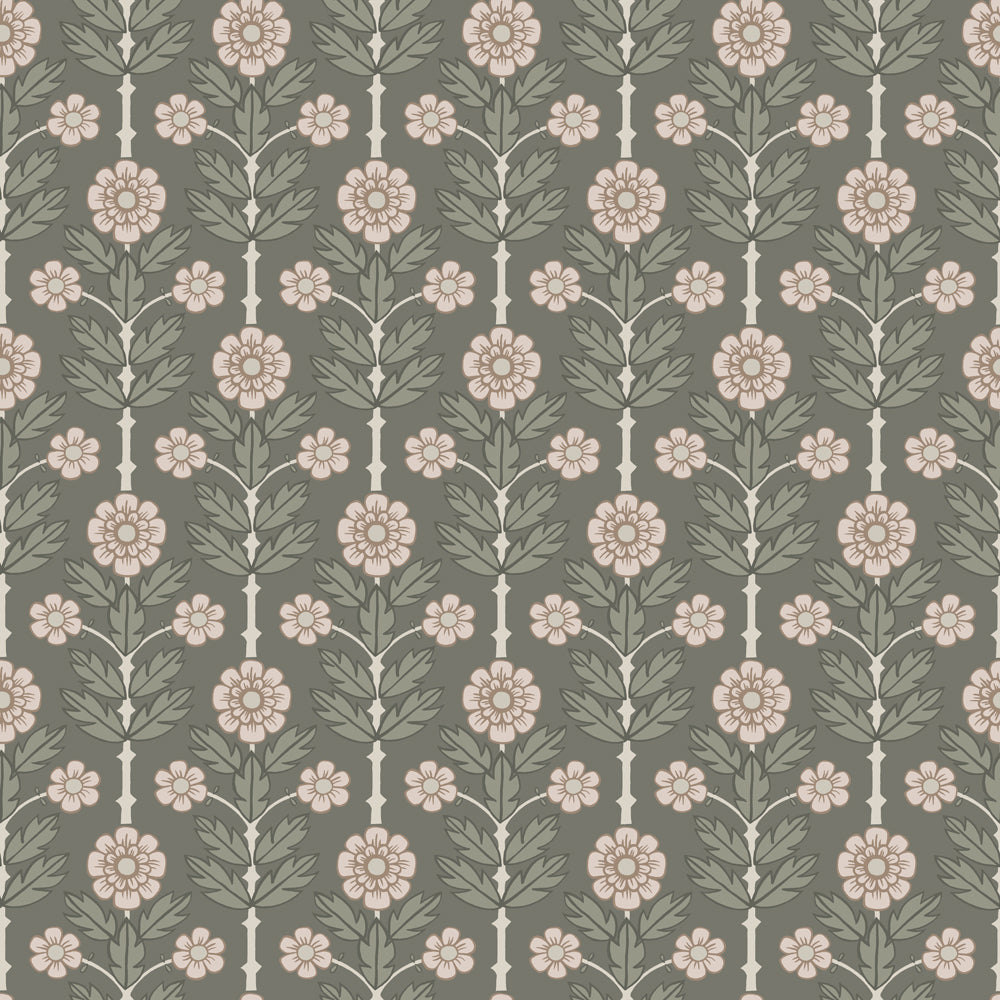 Mörkgrå tapet med ljusa blommor som sitter på en rak taggig kvist. Detta tillför en struktur till tapeten och även till rummet. Denna neutrala tapet gör sig ypperligt i både kök, hall och vardagsrum där flera stilar matchar in på både nyanserna och mönstret.