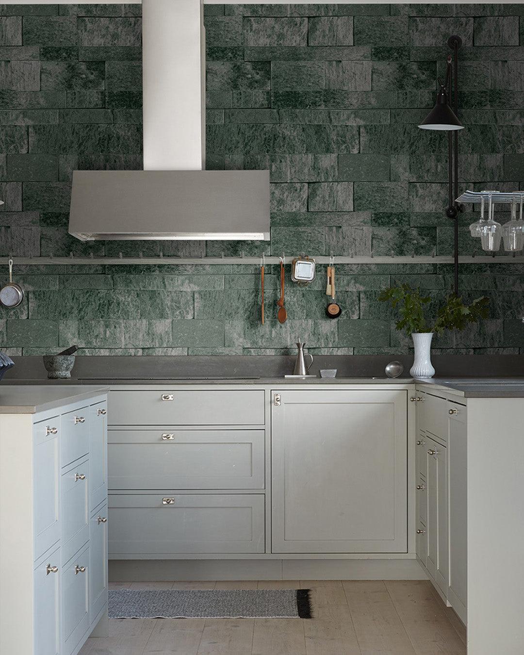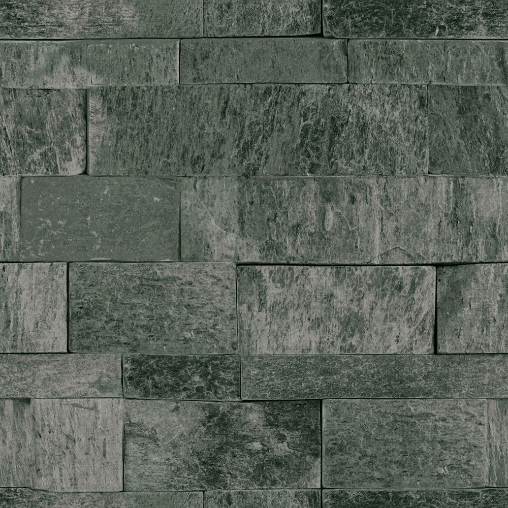 Med denna tegeltapeten får du ett rum som osar karaktär och talar för sig själv. Tapeten har ett stenmönster som går i nyanser av grått med inslag av grönt. Kombinera tapeten med andra råa materialval för en mer effektfull känsla. Tapeten finns i fem andra häftiga färgval som förvandlar rummet.