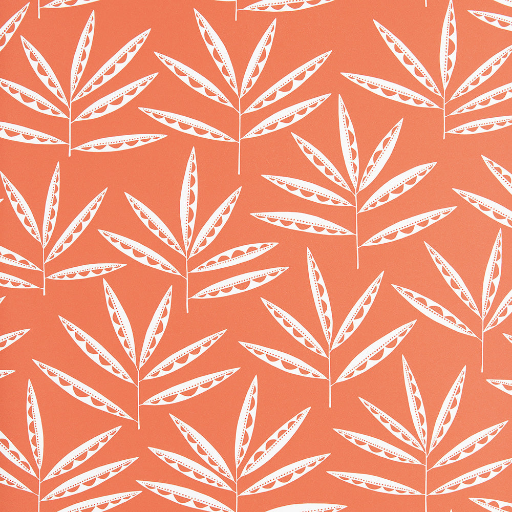 Mönstret Pea Pods är en färgsprakande tapet i en underbar orange nyans fylld av vita sockerätror i utspridda bladformation. Ge en rejäl färg- och lyckokick till ditt kök, vardagsrum eller din hall med mönstret Pea Pods i färgställningen Terracotta.