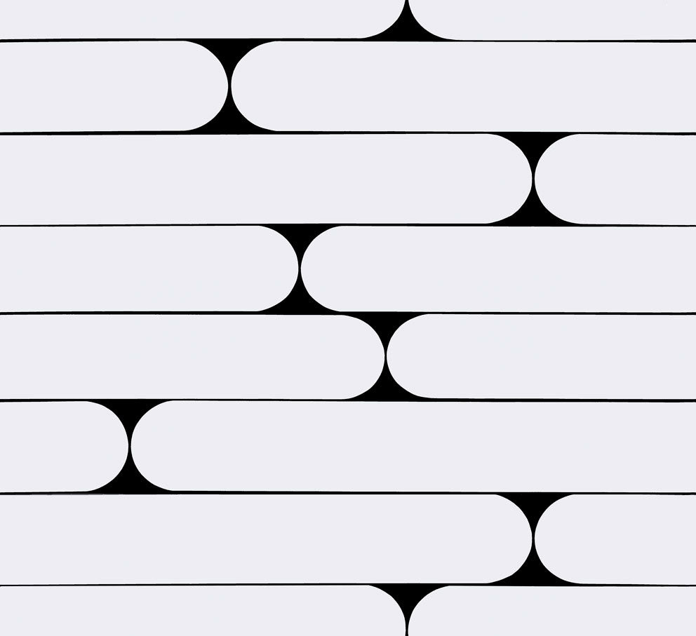 Svart och vit tapet med kontraster och mjuka linjer. I Marimekkos design Putki (rör på finska) ser vi en modern tolkning på geografiska former. Går att tapetsera både vertikalt och lodrätt efter tycke och smak. Finns i fyra färgställningar.