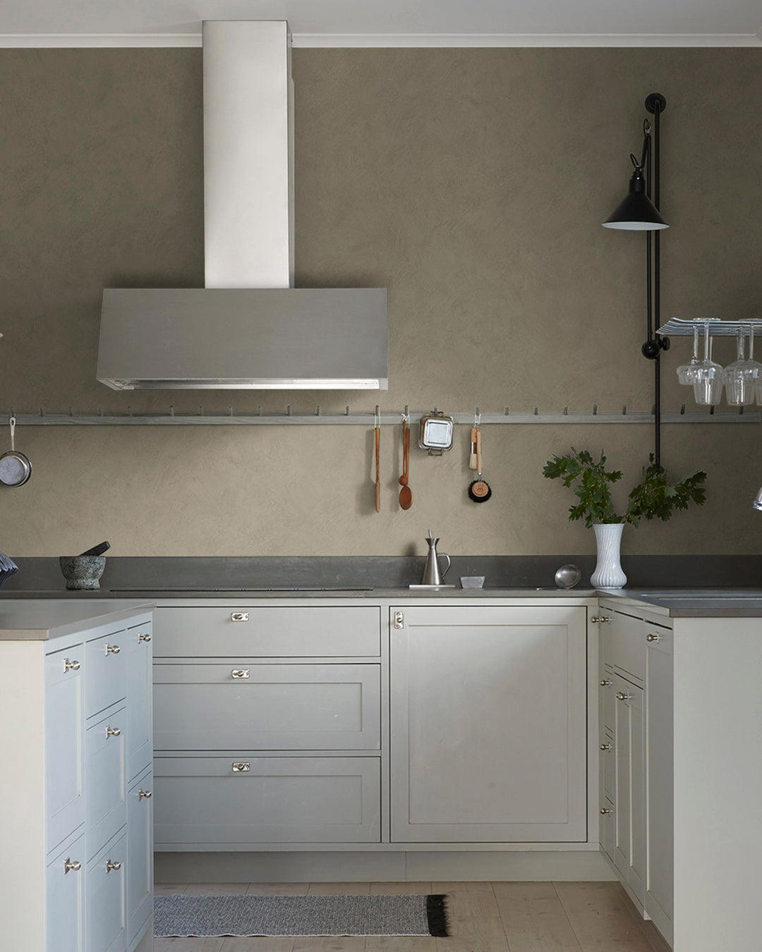 En varm, brungrå tapet med en matt kalkfärgsliknande yta. Ett bra tapetval för dig som vill åt den naturtrogna stilen. Tapeten med sin behagliga nyans har ett mönster som påminner om sträva och ojämna penseldrag. Den här kalktapeten skapar en rofylld men också rå känsla. Tapeten finns i 14 andra färgval.