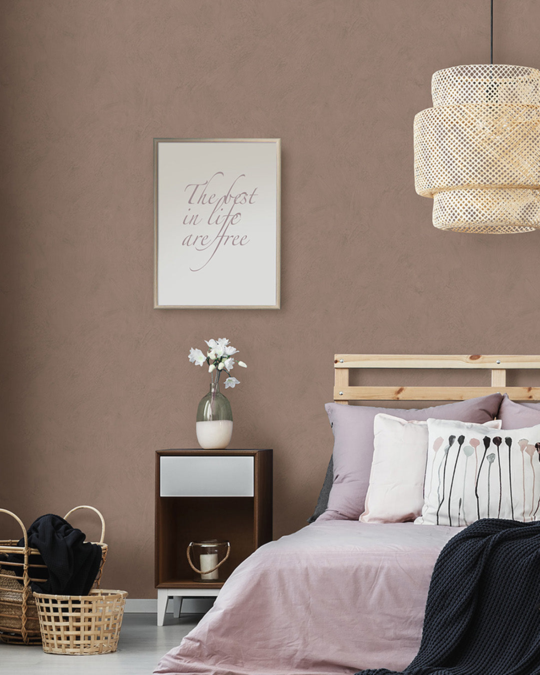 Med den här kalktapeten får du en varm och ombonad känsla. Tapeten har en matt kalkyta med ett mönster som liknar penseldrag, vilket förhöjer effekten av tapeten. Nyansen går i en mjuk terrakotta och bidrar till ett sofistikerat och stilsäkert hem. Tapeten finns i 14 andra både varma och kalla kulörer.
