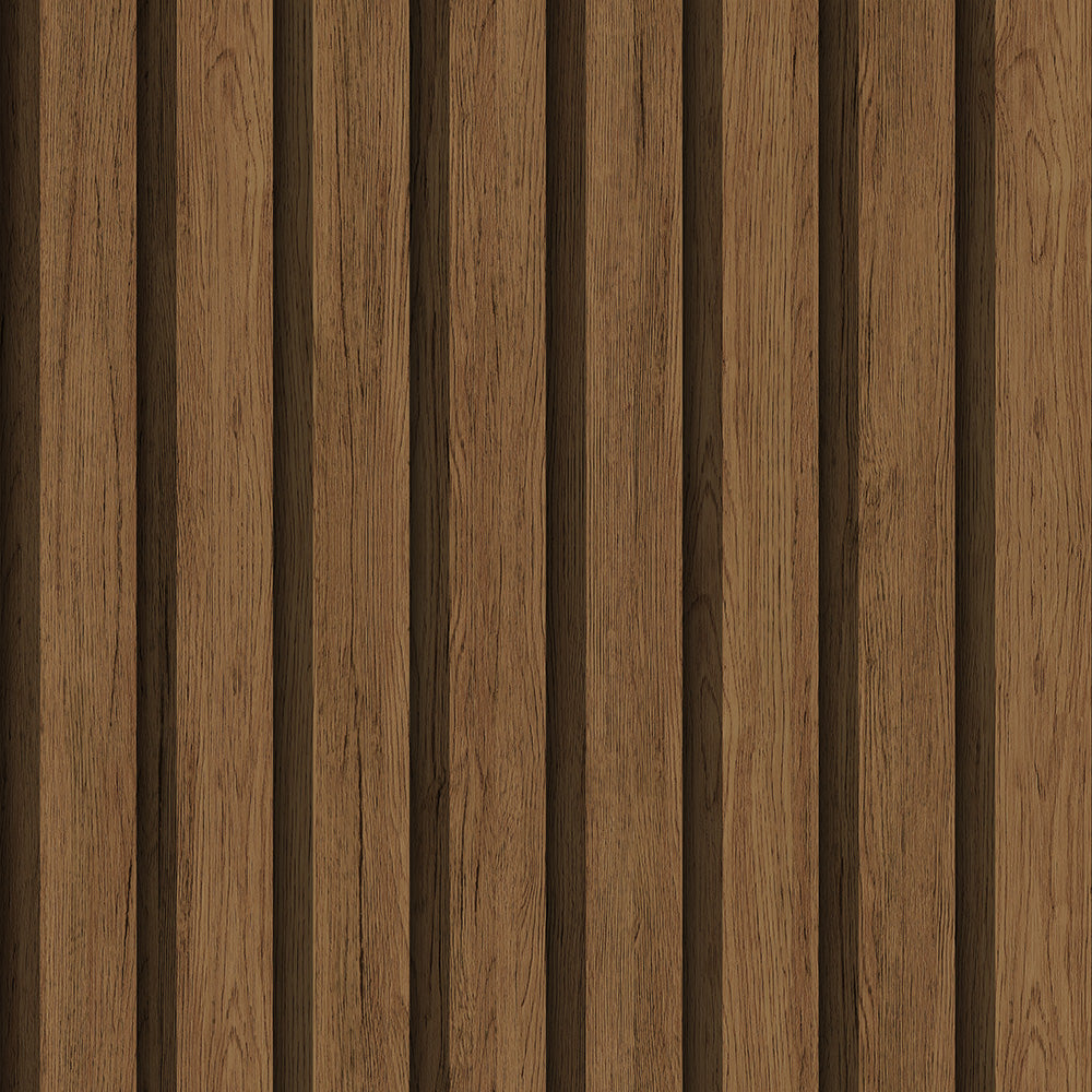 Valnötens mörka utseende kan vara det vackraste av träslag. En ribbad träpanel i tapet är en tidlös och modern detalj som bjuder in till oändligt med möjligheter. Ge nytt liv till bortglömda vrår eller varför inte låta sovrummet få en panelvägg som sängavel. Träribborna är 4,7cm breda med 2cm mellanrum.