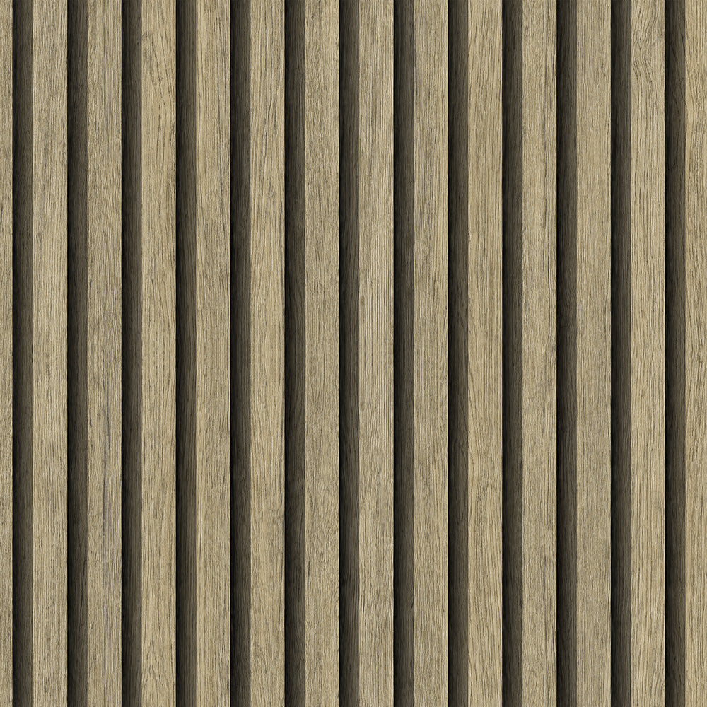 En vacker gråbrun träpanel i ek som ger ditt hem ett klassiskt, tidlöst och modernt uttryck i skandinavisk anda. Denna tapet med sin anspråkslösa design går att kombinera i de flesta typer av hem. Träribborna är 2,5cm breda med 1,5cm mellanrum.