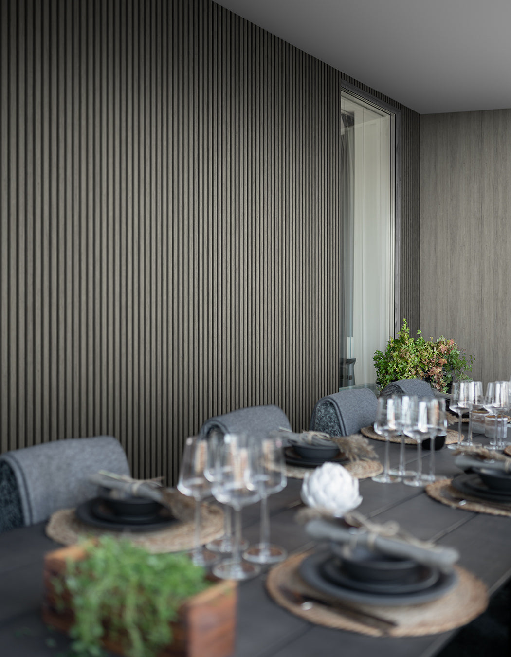 Smala ribbor i en fantastisk grålackad ek, omöjlig att inte älska. Skapa en fondvägg ingen kan missa, eller varför inte klä upp hela rummet och skapa en mjuk mystik? Träpanelen är ett fantastiskt sätt att skapa ombonad känsla i hemmet, och med trätapet har det aldrig varit enklare. Träribborna är 2,5cm breda med 1,5cm mellanrum.