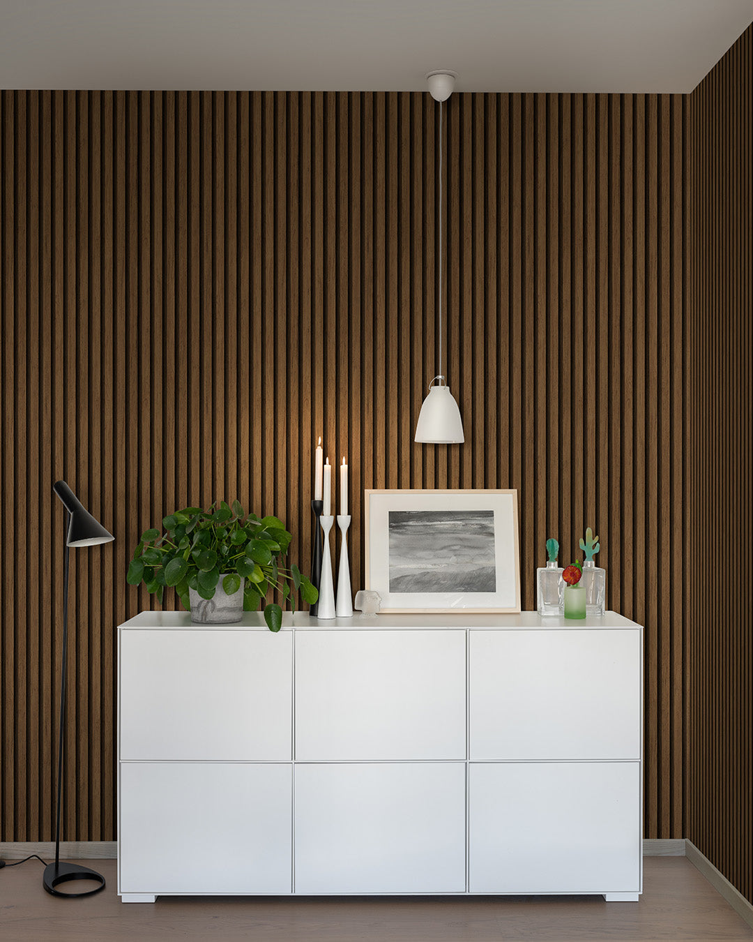 Älskade valnöt. Och hur magiskt i en smal ribbvägg? Skapa träpanelen från dina drömmar och ge hemmet en varm inbjudande känsla med trätapet från Element. En vacker hyllning till vår sköna natur. Träribborna är 2,5cm breda med 1,5cm mellanrum.