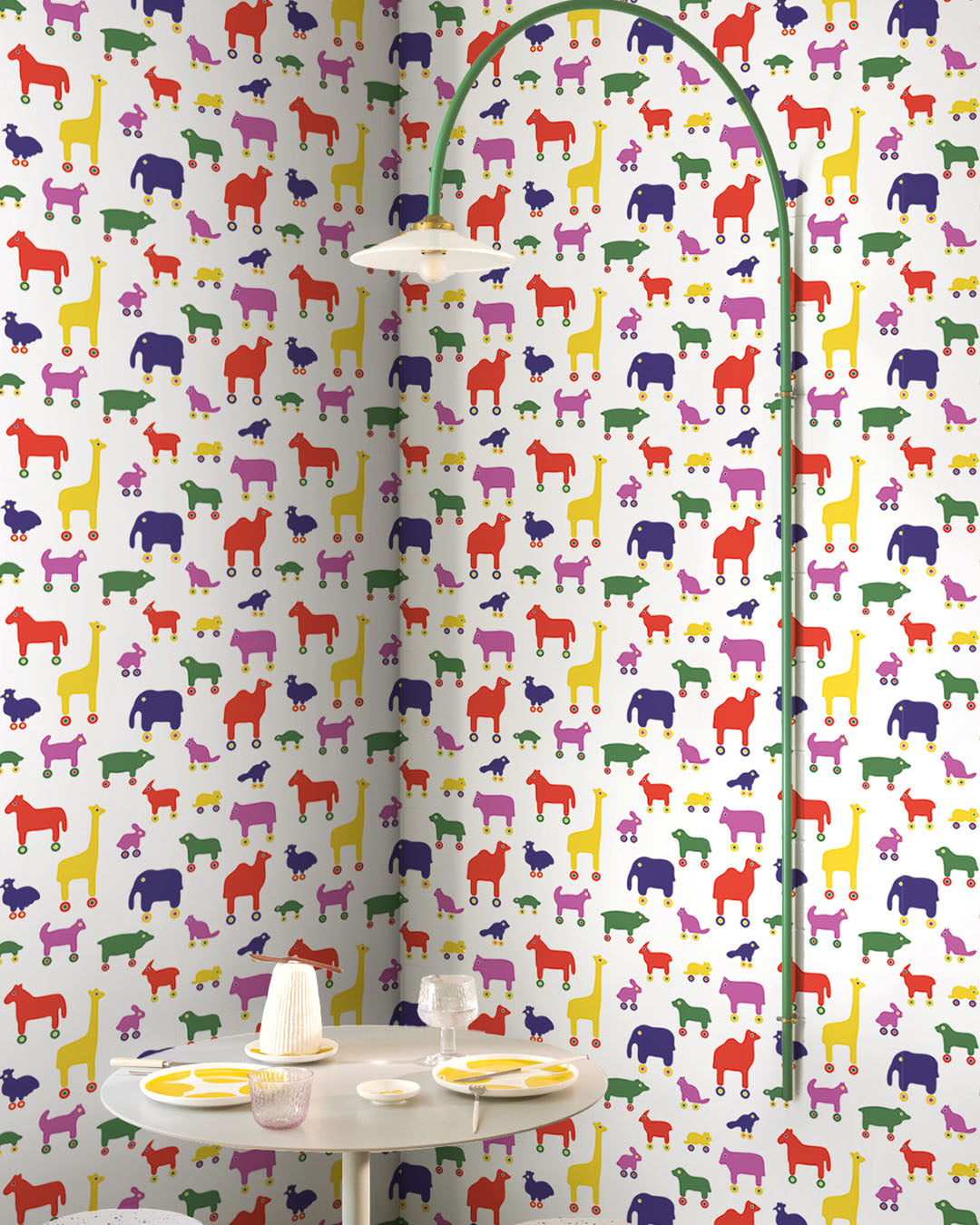 Barntapet Rulla från Marimekko är en lekfull och livfull design som sprakar av färg och energi. Mönstret, inspirerat av rörelse och barns fantasifulla värld, får liv genom sina energiska färger och dynamiska former. I nyanser av cerise, rött, gult, grönt och mörkblått får tapeten en festlig och upplyftande känsla. En tapet som adderar glädje och optimism där kombinationen av färger skapar en stimulerande och inspirerande atmosfär som passar perfekt i ett lekfullt och kreativt rum.