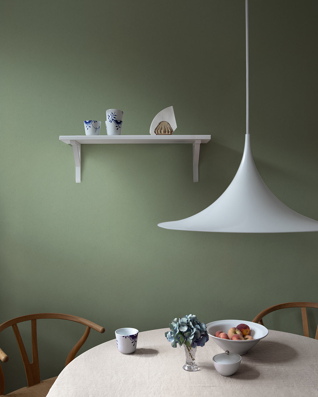 Salvia är en mellangrön enfärgad tapet med en lite varmare ton. Tapeten har en matt och behaglig yta där en diskret struktur ger ett mer levande intryck i rummet. Ett fint och passande alternativ om du vill ha en målad känsla på väggarna men samtidigt enkelheten med att sätta tapet.