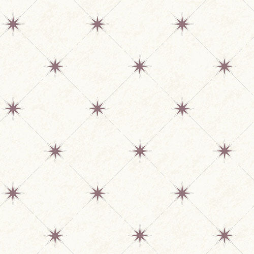 En ljus tapet med ett klassiskt rutmönster av plommonlila stjärnor. Tapeten gör sig fin i den lilla sommarstugan vid havet som det stora året runt boendet med inspiration från havet och dess omgivning.
