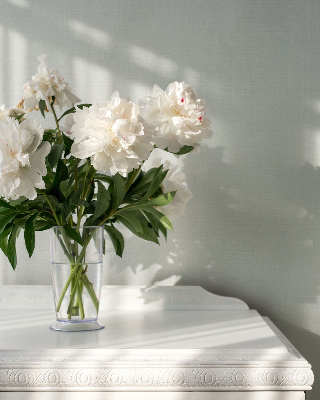 Med enfärgade tapeten Jute i ljusgrå nyans får väggarna en diskret textilyta vilket ger liv åt rummet. Med lätt struktur skapar tapeten dimension till rummet samt skapar en polerad lyxig känsla.
