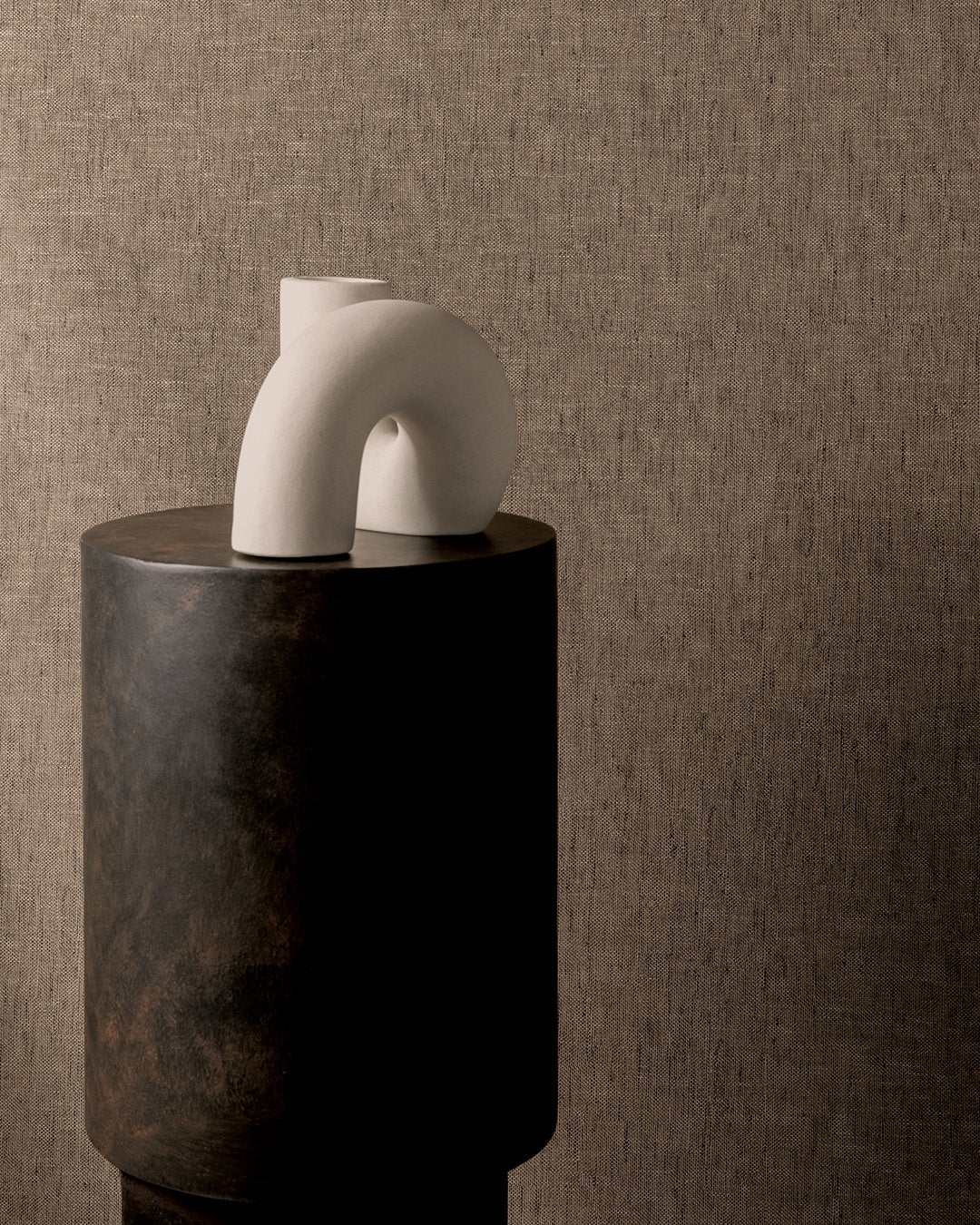 Tapeten Telis Tobacco har ett varmt och sobert uttryck med en vacker textilstruktur som påminner om linne. Den jordnära bruna tonen ger rummet en inbjudande och ombonad känsla samtidigt som ytan tillför djup och naturlig elegans.