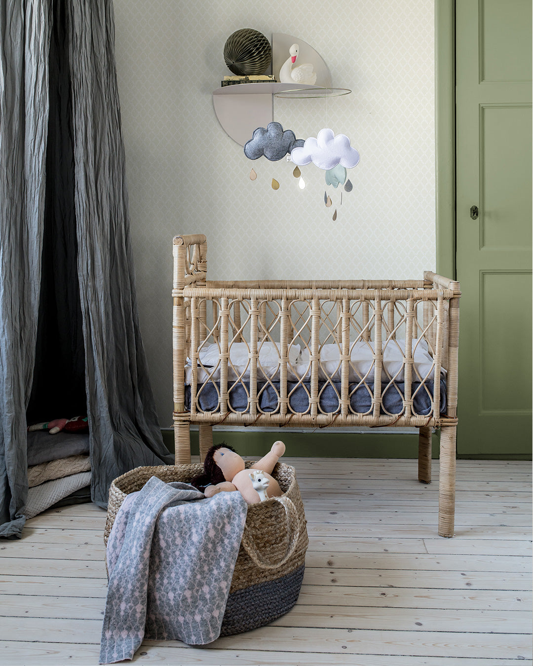 Välkomnas av romantisk charm med tapetserade väggar i klassiskt trellismönster av ett vitt, organiskt bladverk mot en crémefärgad, beige botten. Tapeten Trevor ger rummet en ombonad atmosfär med klassiskt uttryck och passar utmärkt som en länk mellan olika rum om man vill ha en blandning mellan enfärgat och mönstrat.