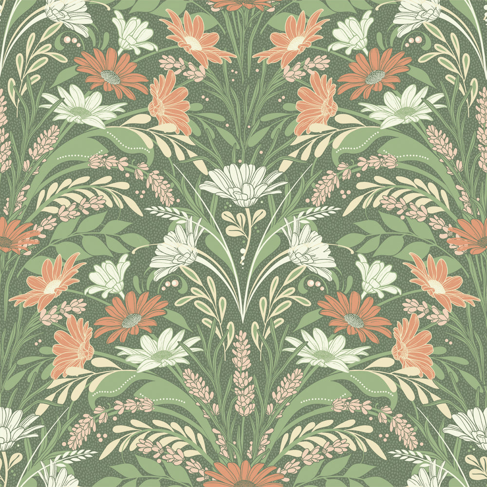 Prästkragen, kanske den mest självklara representationen av vad en svensk sommar är. Minnen av en ljummen midsommarkväll, omringad av nära, kära, skratt och sång. Med sitt vilda växtsätt lyfter prästkragen sina närliggande blommor och växt-grannar till skyarna. En solklar flora att plantera i många av våra svenska rabatter då den binder ihop olika typer av arter. I denna designen ser vi en vit, korallrosa och orange prästkrage interagera med ett uppiggande grönt bladverk och en väldoftande rosa lavendel.