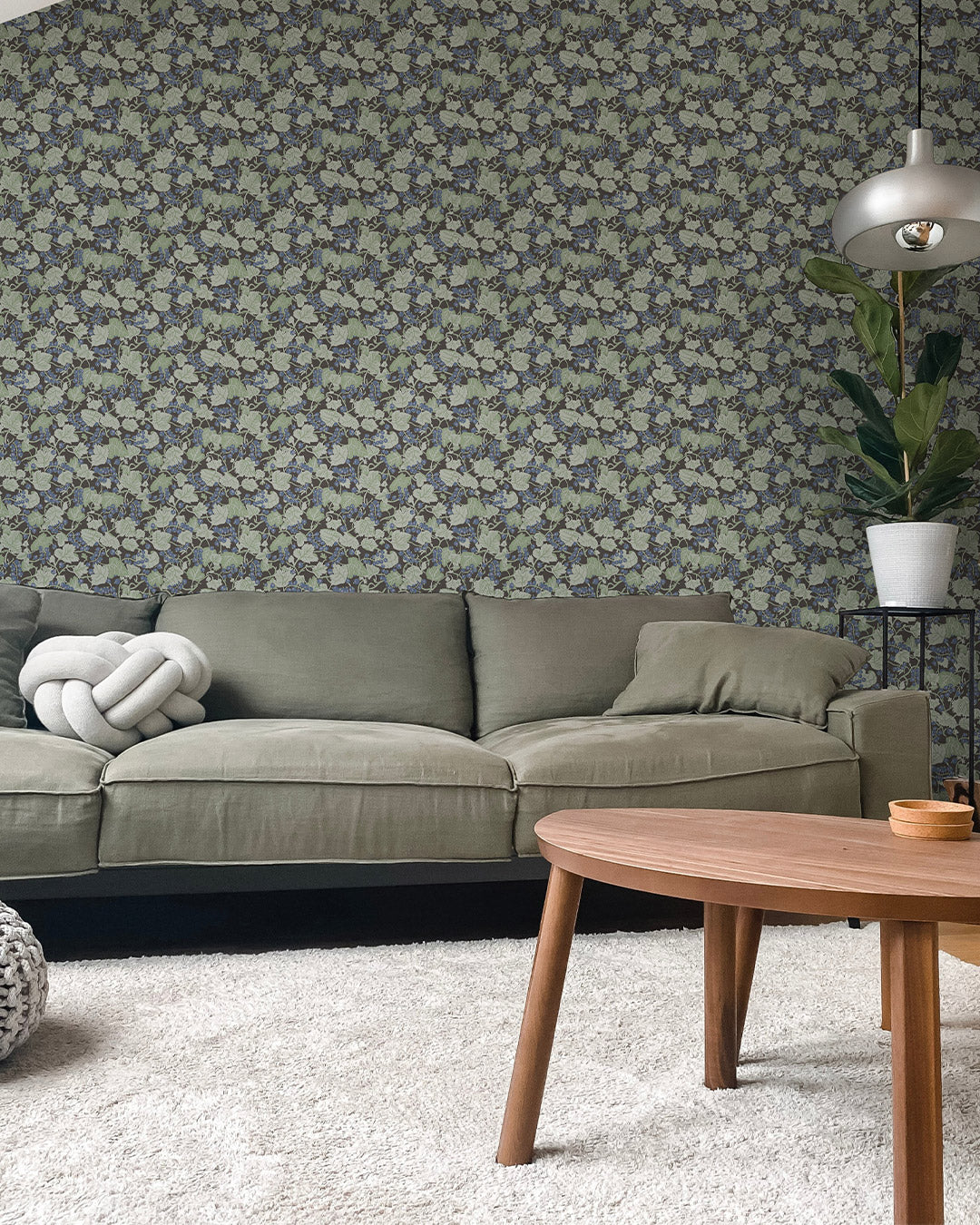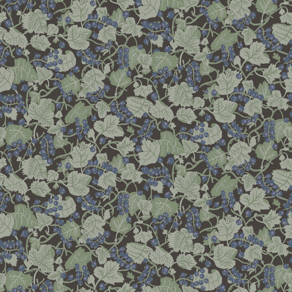 Låt vildvuxna vinbär frodas fritt på väggarna i hemmet såväl som i trädgården. De syrliga bären som påminner om pärlor samspelar fint ihop med ett vackert grönt badverk. Vinbärsplock kommer i två färgställningar, här med en svart botten och ett mönster i grönt och blått.