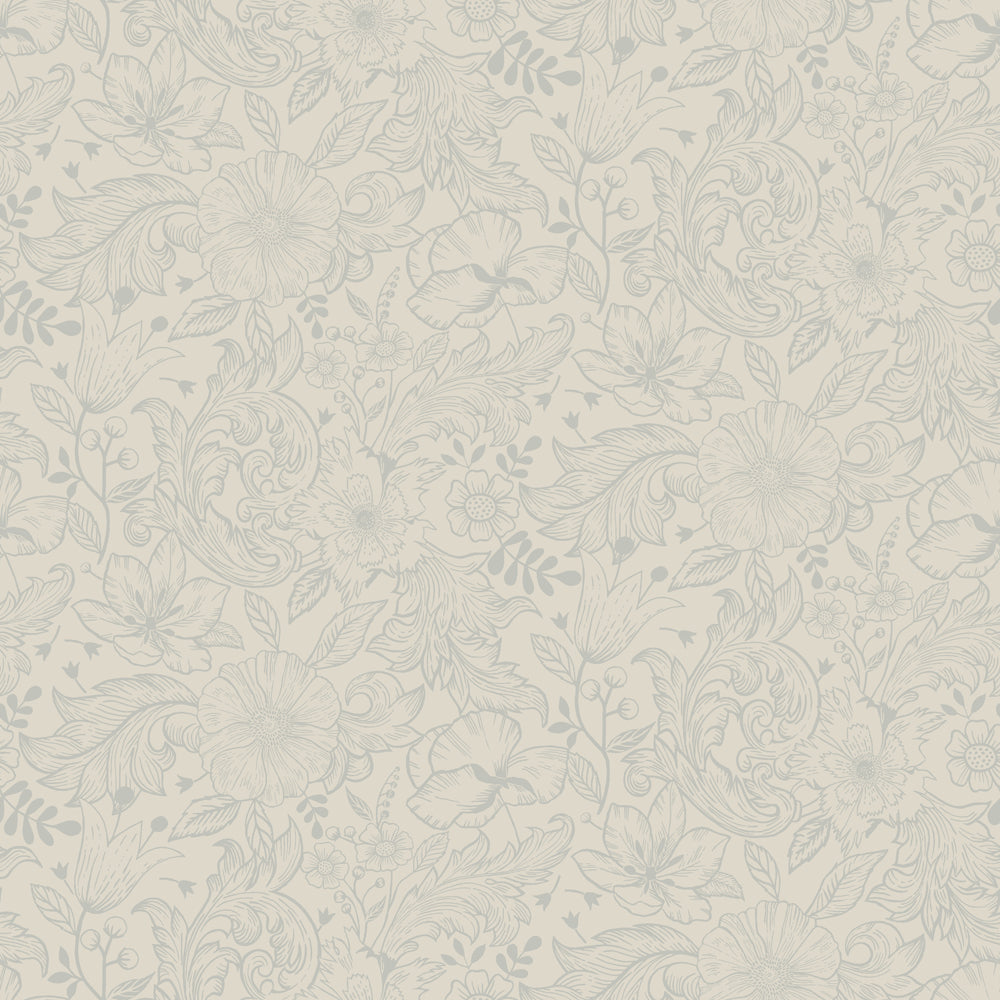 Fixa stilen med vackra tapeten Wilma. Denna underbara ljusa tapeten med sitt konturmönstrade motiv med blommor och blad ger rummet en stilsäker touch. De neutrala tonerna tar inte över på väggen men skapar en mystisk känsla. Tapeten kommer i fem olika färgställningar och är skapad av Hanna Wendelbo.