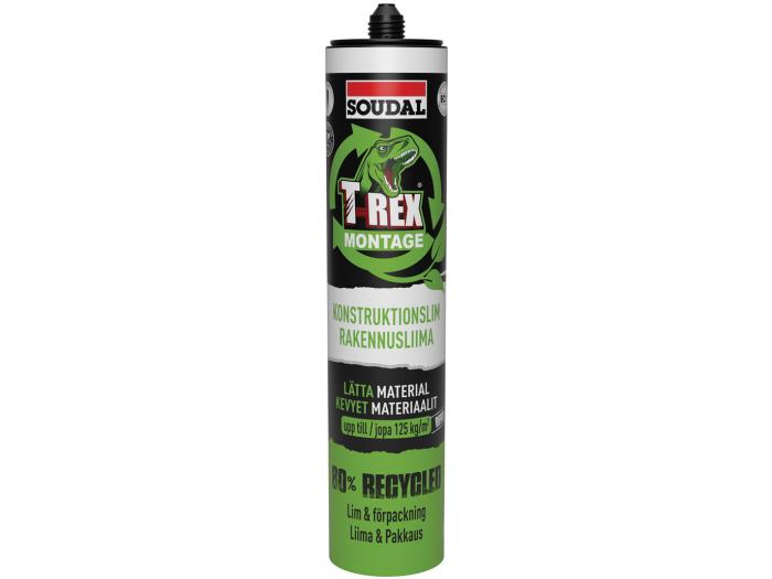 T-Rex Green lätta material 80% är ett vattenbaserat monterings-/konstruktionslim för bygg- och inredningsmontage på porösa underlag.